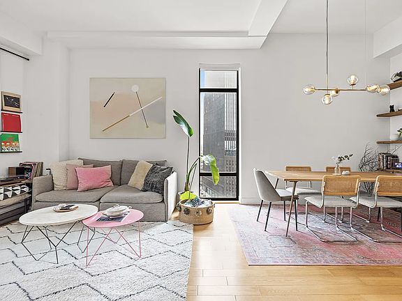 Perched high above the crossroads of Fort Greene, Boerum Hill, Downtown Brooklyn and Park Slope, this spacious, modern two-bedroom, two-bath condo leaves nothing to be desired. The apartment has views for miles and is bathed in natural light throughout the day through oversized windows in each room and three exposures. The entryway is flanked by a wall of closets and leads into the grand open living space. The modern, open kitchen features custom Wenge cabinetry, Caesarstone countertops, Bosch and Fisher & Paykel stainless steel appliances, custom tile backsplash, and ample storage and work space. The flexible layout offers plenty of room for a large, separate dining area and a spacious living room. Enjoy morning sun and fresh air on the balcony off the living area. Both bedrooms are well-proportioned with the master featuring a large en-suite bath with an oversized custom vanity and a walk-in shower. Both bathrooms are outfitted with modern fixtures and finishes, including mosaic and marble tile, and the abundant closet space has been maximized with custom closet organization in each. The apartment offers an in-unit washer/dryer, wide plank oak flooring and high ceilings throughout. 96 Rockwell Place is a boutique condominium with only three or four residences per floor. Other amenities include a fitness center, bike storage, a virtual doorman, and a full-time super. Around the corner from nine subway lines and the LIRR, in the heart of the BAM Cultural District, and surrounded by great shopping (including Whole Foods 365 across the street), dining and entertainment, the location is second to none. Pet friendly too. Available August 1st. Application fee $20/applicant Condo Application processing fee $595 Condo Screening fee $125/occupant