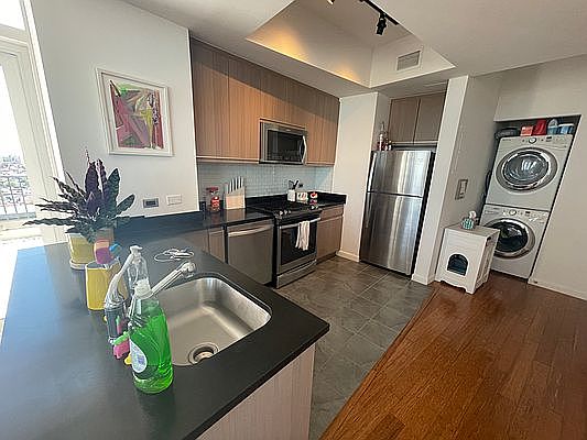 *Welcome to 66 Rockwell* *Where style meets substance, and old meets new, in historic Fort Greene!* Unit 35C features: - Separate, windowed, queen-sized sleeping alcove, with its own closet. - Southwestern exposure with excellent mid-afternoon natural light, and views of our Zen Garden. - Open kitchen with stainless steel Whirlpool appliances, ample storage & countertop space, with an island. - Floor-to-ceiling living windows. - Elegantly-tiled bathroom with chrome fixtures. - Bamboo hardwood flooring throughout. - Custom blackout alcove shades, and living room solar shades. Lifestyle Amenities: Convenience: 66 Rockwell offers luxury in-house valet service. Wash & fold, organic dry cleaning, expert tailoring, same-day pressing, housekeeping, and package delivery right to your door (delivered into your home if you prefer). EOS CLUB: When you are ready to unwind, Rockwell offers the exclusive EOS Club. Members enjoy access to the Sky Lounge and Sky Deck showcasing a panoramic view of Downtown Brooklyn, the East River, the Manhattan Skyline. and the Statue of Liberty. Indulge in the ambiance as the lounge music sets the mood against the glow of our two-way fireplace. At dusk, the lounge becomes even more irresistible as the unique LED ceiling comes to life in color, bringing the NY evening to life. EOS Fit: The EOS Gym features weekly classes including Yoga, Dance Fitness, Full Body Conditioning, Stretch & Core Strengthening and more, all from The Mark Morris Dance Group. Additionally, Kickboxing classes are taught by instructors from Brooklyn Martial Arts. State-of-the-art equipment, including Peloton Bikes and a Smith Machine, allow for endless workout opportunities. EOS Play: The game room offers billiards, foosball, table tennis, magnetic Scrabble, and an old-school Arcade room with classic video games all set to free play. Zen Garden: Members have access to large, gas BBQ grills, a dining table and an array of patio furniture, making the Zen Garden feel like your own backyard. A large screening wall hosts our popular summer movie nights. EOS Community: Only at Rockwell will you experience a full, social interactive community. EOS club events include our Game Night, cooking & cocktail classes taught by well-heeled professionals, wellness events, happy hours, movie screenings and much more. Members also have access to the club's bike share located right in front of Rockwell, reserved only for EOS members. The book club, sponsored by the beloved neighborhood Greenlight Book Store, welcomes new members.