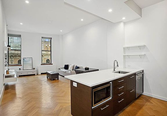 Brand New to the Market! A HUGE SUNNY EASTERN facing 736 sq ft LOFT junior 1 bedroom alcove with 12-foot-high ceilings for rent in the beautiful neighborhood of Fort Greene!! Can be used as studio with private home office as well!! Bonus Add ons: BOSE Surround sound system & Lutron lighting installed in living area Interior: Oversized windows, Herringbone hardwood floors, modern kitchen that includes Wenge cabinetry and Caesar stone countertops, stove, dishwasher & microwave. Luxurious bathroom with a deep soak in tub and rainforest shower head. Unit comes with a video intercom that includes a security alarm. There's a washer/dryer in one of the closets. Alcove bedroom has a large double closet & sliding doors or use the room as your own private home office!! Exterior: Virtual doorman, full time super, gym, bike room, elevator building Neighborhood features: Proximity to community garden and parking garage on the corner! Close to BAM, Fort Greene Park, Whole foods 365, Apple Store, Dekalb food market, Alamo cinema, Barclays center and so much more! 1 block away from Atlantic terminal transportation hub-LIRR, 2,3,4,5,B,D,N,Q,R,M7 W trains Rent includes hot water & all amenities Tenant pays gas, heat/electricity & broker fee Move in date Feb 15th First month rent due $3650 & 1 month security deposit &3650 Pets ok with landlord's approval Reach out for a private viewing today!! All viewings are by appointment only