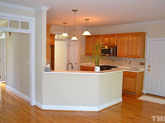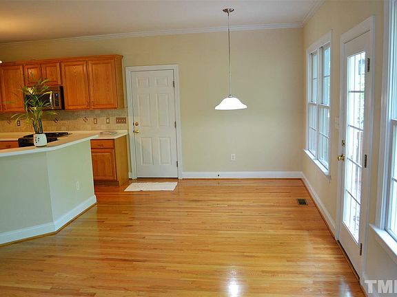 Custom home in highly sought after Scotts Mill for extremely rare price point for a home this size & a 2 CAR GARAGE. Awesome cul-de-sac location, & fabulous curb appeal. Recently re-finished hardwood floors throughout 1st floor. Dining room w/ open beam ceiling. Kitchen features newer SS appliances including DUAL fuel range. Family room wired for surround sound, gas fireplace. Master w/ private balcony & WIC. Large bonus room w/ endless possibilities. Oversized deck w/ wooded views. Apex-#1 place to live.