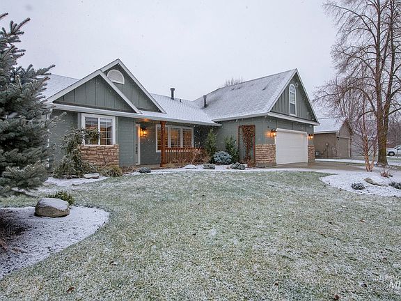 This charming 3-bedroom, 2-bathroom home, located on a spacious 10,846 Sq. Ft. corner lot, large garage, is a must-see! Situated in the heart of Eagle, it's just minutes away from all your daily conveniences, downtown Eagle, Parks and easy access to Boise. As you approach the home, you'll be greeted by its inviting curb appeal. Inside, the well-thought-out layout maximizes every square foot, with the master suite thoughtfully separated from the other bedrooms for privacy. The open and comfortable great room flows seamlessly into the well-appointed kitchen, making this space perfect for both relaxing and entertaining. Step outside onto the beautifully covered patio, where the large backyard offers plenty of room for a play area, gardening, or outdoor gatherings. Upstairs, you'll find a versatile bonus room that can be transformed into an arts and crafts space, office, media room, playroom, or 4th bedroom. Well priced, an ideal size interior, large lot, great location and top rated schools. Welcome Home!