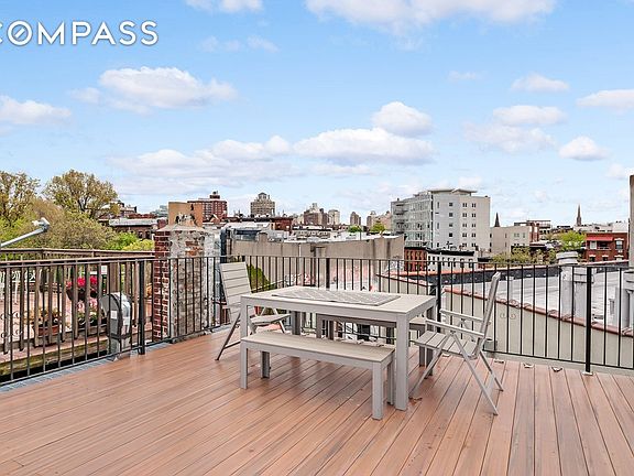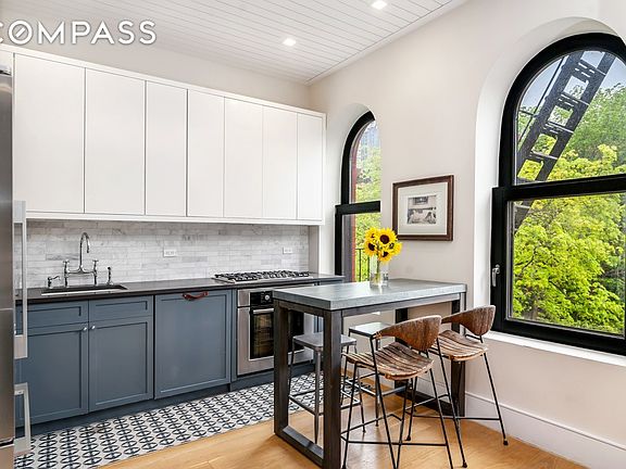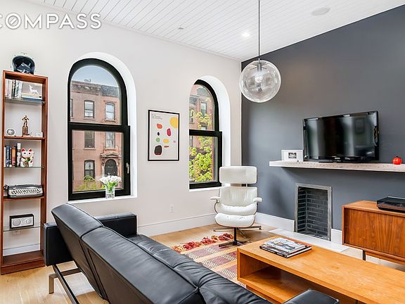 Custom 2 Br CONDO in a Prospect Heights PASSIVE HOUSE with private deeded roof deck! Energy efficient with triple paned windows and a circulating air system, keeping your heating and cooling costs very minimal. The kitchen has custom Shaker-style cabinets, limestone countertops, a Bosch dishwasher, oven, stove, and Fisher Paykel refrigerator. The living room has 4 beautiful arched windows and the whole apartment has a wired entertainment system with zoned speakers, a Bosch washer/dryer, a voice and video intercom, an instant hot water heater, and a mini-split HVAC system. The master bath has a cast iron claw foot tub, and both baths have Carrera marble floors, custom medicine cabinets and vanities, white marble countertops and backsplashes, exposed brass fixtures, Toto dual flush toilets, and Restoration Hardware lighting. The rear master bedroom has a walk in closet and private entrance to the bathroom. The second bedroom is large enough to accommodate a queen sized bed. The roof deck is perfect for grilling and entertaining. There is also a private storage unit with the apartment. This unique condo building meets Passive House standards for energy efficiency and is conveniently located, moments from Prospect Park, Barclays center, the Brooklyn library, tons of fantastic restaurants and shops as well as the 2/3, B/Q and a short stroll to the LIRR at the Atlantic Terminal.