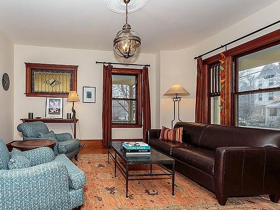 - Din Dscrp: Flooring - Hardwood, Fireplace, Chair Rail, Closet/Cabinets - Custom Built, Window(s) - Stained Glass