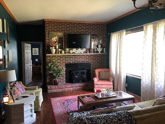 Must see to believe this spacious and well-maintained cottage home. This home offers large rooms with high ceilings, 2 formal bedrooms with 2 additional rooms that can easily be bedrooms, office space or a second living room space. Floor to ceiling brick fireplace, open layout with spacious kitchen. Fenced yard space, carport and large storage building plus a rear deck with amazing views.