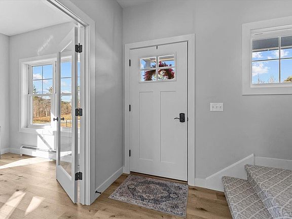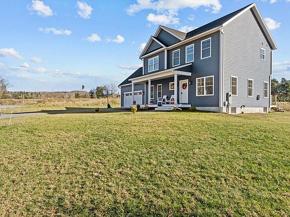 This beautifully custom-built colonial is a true masterpiece, blending thoughtful design with stunning mountain views. Situated on 0.80 acres, the home offers 3 bedrooms, 2.5 bathrooms, and an open main floor layout with 9-foot ceilings throughout. The modern kitchen features quartz countertops, a herringbone backsplash, stainless steel GE Profile appliances, and a large island that overlooks the living and dining areas. The spacious living room is perfect for hosting, complete with a gas fireplace surrounded by a tiled mantel and shiplap accent wall. Need some quiet? Retreat to the office or study through custom glass doors for a peaceful escape. Convenience is key with a large entryway off the oversized garage, including a mudroom and a powder room. Upstairs, you'll find three generously-sized bedrooms, including a primary suite with a custom tiled shower with a niche and a large walk-in closet. The second floor also includes a full bathroom, laundry room, and a bonus space currently used as a 4th bedroom. The basement provides ample storage space with potential for additional finished square footage. Enjoy the benefits of a practically brand-new home, complete with maintenance-free composite siding and decking, without the hassle of new construction. Just minutes from Jericho Center, schools, and local amenities, this home offers the perfect balance of comfort and convenience.
