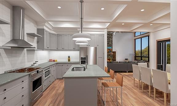 This Contemporary Craftsman home, built by Century Craft homes, takes design and construction standards to the next level in Connestee Falls. As you enter the home through the covered entryway you are greeted with vaulted wood ceilings, a custom stone fireplace, white oak hardwoods throughout. The modern chef's kitchen with upgraded appliances and the dining area look out onto the great room with doors leading out onto a screened in porch, an open deck and a grill deck. The master bedroom features tray ceilings with shiplap finishing and a luxurious master bathroom with double sinks, 2 walk-in closets, a tub and a shower. The basement is unfinished but the builder is prepared to finished with a living area, a bedroom and bathroom as well as a kitchenette. This lot is conveniently located very close to East Fork Gate and has beautiful winter views. This home has begun construction. Sign up now and customize your finishes! Buyer pays one time $8000 amenity fee.