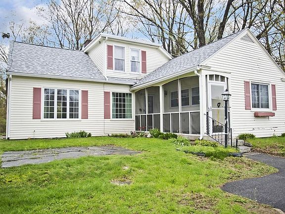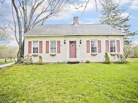 Truly a gorgeous and peaceful setting on 3.38 acres. This classic 3-bedroom Cape with large country style kitchen has lots of windows to enjoy the views and ample room for a large dining table or to add a convenient work island. Living room has hardwood floors, fireplace and more large windows that take in views of the side yard and stonewalls. A first floor bedroom, full bath and side screened in porch with slate floor complete the first floor. Up are 2 bedrooms and a ¼ bath. One of the bedrooms opens into a sitting area. Outside there is a 2-car garage with side porch, fun playhouse and a large level sunlit yard bordered by stonewalls and perennials. Close to Outlook Farm and Route 66. Approx15 minutes to Northampton center.