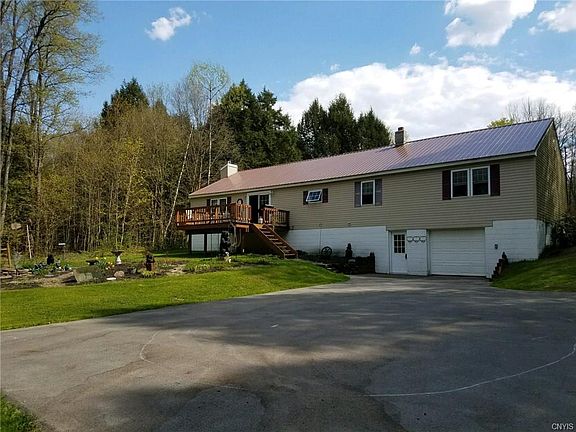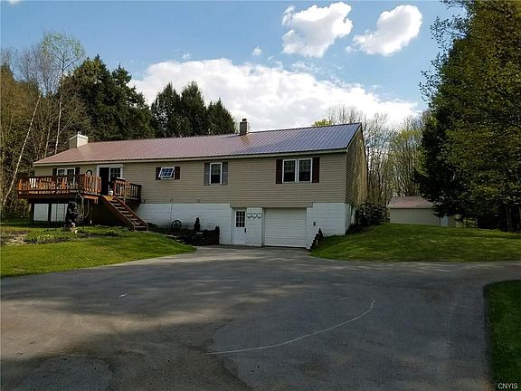 Just off the beaten path, sits this spacious ranch on 9.5 acres. This home offers 3 good sized bedrooms, 2 full baths, first floor laundry room, master bedroom w/bath and garden tub, large kitchen w/island open to the dining room. Plenty of space here for the family to gather. Off the dining room, enjoy sitting on your deck overlooking the garden pond and yard bordering Potter Creek. The basement /garage allows plenty of room for your vehicle, toys, workshop , office ect. Not to worry, there is more space available in the additional detached garage, New metal roof completed May 2018!If you are looking for space, privacy, nature, yet want an easy commute to Syracuse, Watertown or the many recreational areas offered....this could be the place for you!