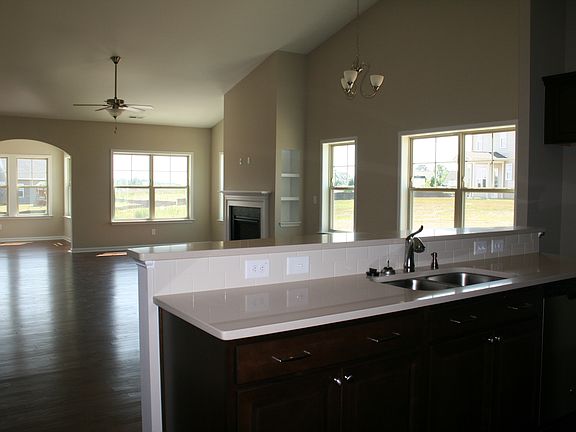 The Dalton D, is our largest single-story plan with massive vaulted ceilings and a complete open-concept kitchen and family room! This four bedroom, three bathroom floor plan features a large flex space as you walk in the front door . Open kitchen to the family room boasts a large center island with raised bar top, corner pantry, granite countertops, recessed lighting, built-in music port with two ceiling speakers and stainless steel appliances! Two bedrooms are on the same hallway leading back to your master suite with a vaulted ceiling! Hardwood floors flow throughout the main living area, kitchen and hallways. Tile floors in all baths. Do not forget to take the hardwood stair treads up to explore the fourth bedroom with a full bath on the second floor.