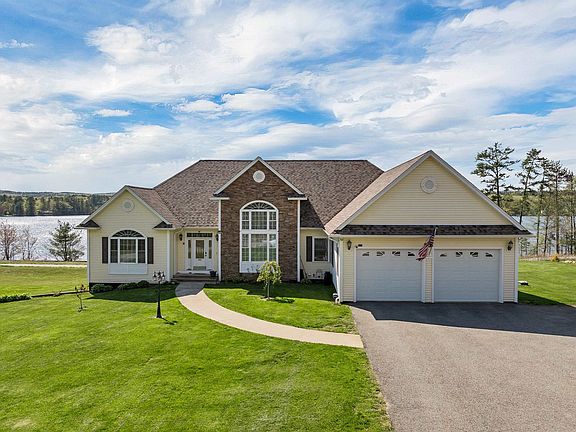 Just 250 feet from Lake Winnisquam, this elegant custom-built home offers exceptional craftsmanship, panoramic views, and a private, tranquil setting. With 20+ oversized windows, each room captures westerly water views, breathtaking sunsets, and an ever-changing display of wildlife—bald eagles, ospreys, and more. Set on a landscaped .56-acre lot in a private 24-home subdivision with walking and biking trails, the property includes shared waterfront with a seasonal day dock, swim area, and floating raft—ideal for kayaking, paddle-boarding, or simply relaxing by the shore. There is also an opportunity for your own boat dock or mooring.The single-level main floor is designed for everyday comfort and entertaining. The kitchen features timeless cabinetry, a center island, and stainless steel appliances. A sunlit breakfast nook opens to the a deck, offering breathtaking views. The dining room soars with 14-foot ceilings, while the main living area offers 10-foot ceilings, hardwood floors, and designer lighting. The primary suite is a private retreat with a spa-like bath, soaking tub, walk-in shower, oversized closet & a second built-in closet. A spacious laundry room includes storage and a deep sink. The walk-out lower level adds a large family room, storage, and an accessory apartment with kitchen, lake-view bedroom, bath, laundry, and tandem garage. Close to restaurants, shopping and skiing—this home delivers elegance, comfort & convenience in one remarkable Lakes Region package.