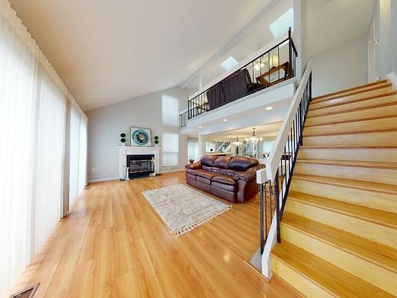 A true moving ready end unit townhome! The moment you enter you are immediately impressed with the gleaming hardwood floors throughout. The ample living room with a modern gas fireplace, a step down to the formal dining area, 2.5 updated baths, a gourmet style kitchen with stainless steel appliances, granite counter tops, a center isle with extra cabinetry under it, a great size pantry that becomes so useful, sliding doors to a wooden deck to enjoy morning coffee or reading a good book. The 2nd floor has a loft/family room area, two bedrooms each with their own bath, a balcony off the master bedroom. A full basement a one car garage and so much more. Award winning school system. Easy access to major highways shops and restaurants. Make this your home today!