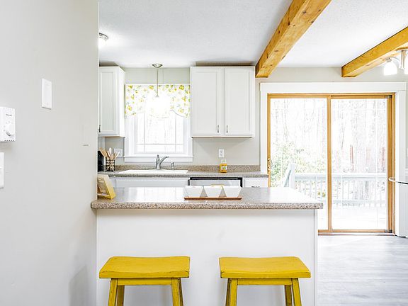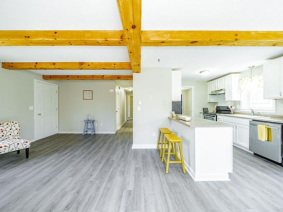 FOR RENT! One floor living at its best. This open concept home offers a bright living room open to the dining area, giving plenty of elbow room to everyone. Beautiful beams on the ceiling make the space pop. Along with 3 bedrooms and a full bath close to bedrooms there is a convenient laundry room right off of the kitchen. With the lovely kitchen looking into the living room, entertaining your family & friends will be easy peasy. Private rear deck and yard.