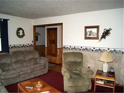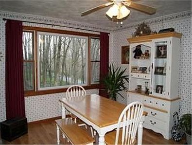 Another great Randolph Ranch. Enter through the front entryway with tile floor, coat closet and wainscoting. The carpeted living room is carpeted, bright and sunny. The dining room has Pergo wood floors and a large picture window. The hickory kitchen has in-laid laminate countertops and a new stainless kitchen sink. The addition of a breakfast room full of windows, wainscoting, and tile floors overlooks the back yard is a great spot for the morning coffee. The large master bedroom has his/h er closets, carpet and a tiles sitting room that overlooks the backyard. The second bedroom has double closets, carpet. The third bedroom has been freshly painted and carpeted. In the basement you find a large office or 4th bedroom with an attached bath and closet, the laundry area, 2 car garage, utility/storage room. A large and inviting front deck is a nice spot to enjoy the evening or sit on the back patio and enjoy the woods behind you.