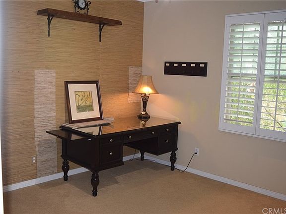 End Unit. Beautiful Irvine Village Community of Woodbury. You are greeted at your entry with marble Flooring. The Spacious home has 3 bedrooms 3 baths one of which is on the main floor with its own bath and private entry. This former model home has a formal living room with fireplace, plantation shutters, recessed lighting and plenty of windows for natural light. The formal dining room which opens to the private garden courtyard has built in shelves, plantation shutters and recessed lights .Your private patio is great for relaxing, barbecuing , or entertaining friends and family. The Gourmet kitchen boasts stainless steel appliances and plenty of cabinets and counter space , has French doors to the outdoor breakfast nook for morning coffee. Crown molding and plantation shutters throughout the home add elegance. Top of the stairs there are more built ins and a great space for an office nook. Secondary bedroom upstairs has its own bathroom ,the laundry room with washer and dryer included . The expansive Master suit bedroom has recessed lighting ,plantation shutters and great natural light throughout , large walk in closet, private restroom, large stand alone tub for soothing, marble shower, his and her sinks and custom mirrors. Your community has fantastic schools, "The Commons" park, Tennis, sand pit volley ball, jr Olympic swimming pools, bbq and clubhouse.There is a sandy beach pool close, walk to Woodbury Town Center,or hike the miles of Jeffrey Open Space Trail.