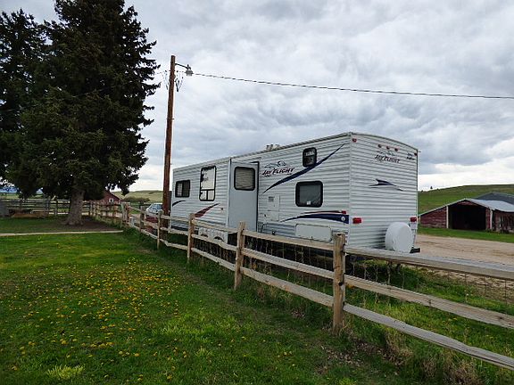 A little slice of Montana. Just minutes from Lewistown, via county roads, escape to this home on 1/2 acre property with great space and fun amenities. RV electric available for your camper or guests camper, a hot tub under the stars, fenced yard, and a quaint home featuring a great mud room leading into a charming kitchen and then a bright open living dining area. 2 bedrooms do have steps to get to them. Basement space for storage and mechanicals. Established trees and a unique country location.