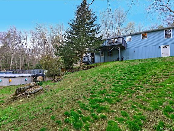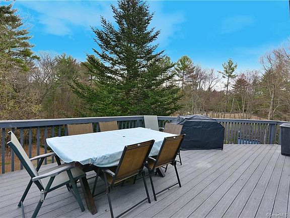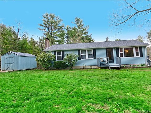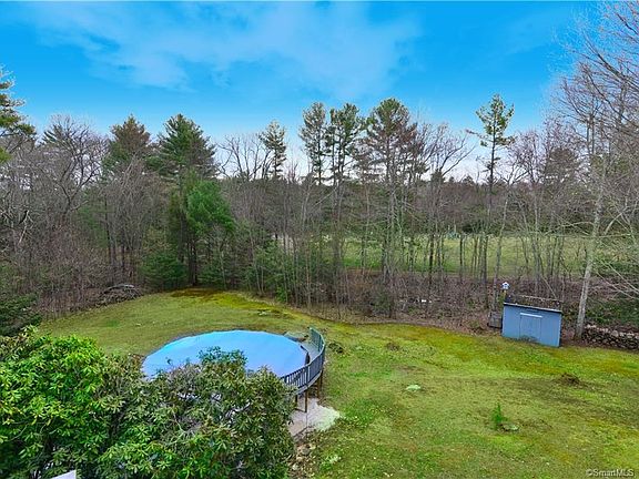 Well maintained Country Ranch Updated Kitchen with Corian counters & solid oak cabinets, vinyl flooring, all appliances to convey. Open to Dining area with sliders to extra-large composite Deck. Ceiling Fan between Sunny Front living room with big bay window, with views of scenic State Forest across the street. Easy care laminate floors. Master bed has private bath with shower. Laminate floor. Large front bedroom with carpet. 3rd bed/office with laminate floor. Guest bath with tub/shower. Large Walkout lower level with partial Rec room. Newer Buderus furnace & insulated indirect oil-fired hot water tank. Well insulated home is economical to heat. Newer well tank. Walk out to back yard and Above Ground Pool with wrap around deck-7 years old. Sellers to put in new pool liner. Brand New Roof April 2021. Large Handy Shed on side of House, Smaller shed near pool. Laundry in lower level, washer & dryer to stay. Sellers said furnishings negotiable. Nothing to do but move in and enjoy. Sit out on your private deck and breath in the tranquil nature. Brand new leech field. Great Commuter location to I 84 & UCONN.