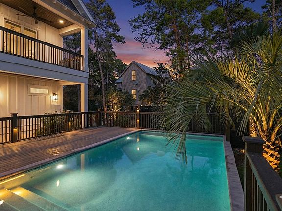 Property is under contract subject to a 72-hour kick-out clause. Tucked away on a quiet cul-de-sac south of 30A and surrounded by the protected natural beauty of Draper Lake green space, 96 Vicki Street offers the rare combination of privacy, walkability, and true 30A living. From this prime west-end location, you can leave the car at home and stroll to Cafe Tango, Local Catch, or Goatfeathers in under two minutes, bike the scenic 30A path, or take a quick golf-cart ride to Grayton Beach, Gulf Place, or Seaside. With the Gulfview Heights Beach Access just a 6-7 minute walk away, this home delivers the effortless coastal lifestyle buyers seek in a luxury beach property. Built by BMW Homes with exceptional craftsmanship, this 7-bedroom, 5.5-bath residence features over 3,300 square feet of interior living space plus more than 1,500 square feet of porches and outdoor rooms designed for year-round enjoyment. The expansive outdoor retreat includes a 14×25 saltwater pool, large sun deck, outdoor kitchen, covered lounge areas, and a fully fenced yardall bordered by mature landscape for enhanced privacy.