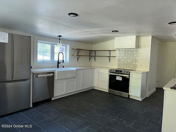 Welcome to your dream retreat. This stunning 5 Bedroom, 3.5 Bath home has been completely remodeled and is nestled on 3 picturesque acres. Step inside where you will be greeted by elegant hardwood floors and chestnut ceiling beams that add warmth and character. The bright sunroom invites natural light and serene space to relax or entertain. The chef's kitchen boasts stainless steel appliances and solid surface countertops. Each of the tiled baths features modern finishes and walk-in showers, ensuring both comfort and style. Step outside to enjoy the tiered decks, meandering creek and lush gardens. Spacious 2 car garage with workshop and ample storage. Every detail has been designed for modern living. Close to major highways and NYS Thruway. 25 minutes to Albany.