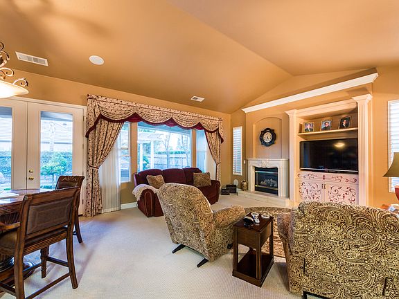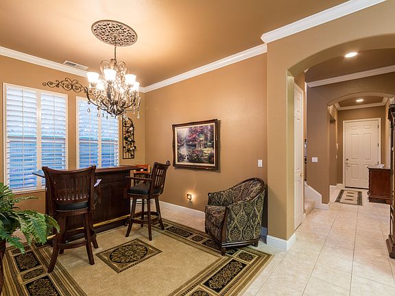 Absolutely breathtaking 3 bedroom, 3 bath 2 story home in King's Crossing's gated community. Entering the home you will be swept away by the beautiful custom painted Murial on the wall, high ceilings, crown molding and the custom rod iron staircase that leads to the upstairs suite. The suite has a separate living room and a spacious bedroom with his and hers closets and a private bath. As your tour takes you downstairs, the kitchen is the center of the home, with upgraded kitchen craft cabinets, granite counter tops, breakfast bar and a built in refrigerator! This area is open to the formal dining room and family room which features many upgrades such as custom painted entertainment center, beautiful archways,lovely fireplace, and designer window coverings. Master bedroom is exquisite with a tray ceiling, custom lighting, gorgeous designer window coverings,and a private bath.Backyard is relaxing with a putting green, covered patio,and beautiful landscaping and water fountain.