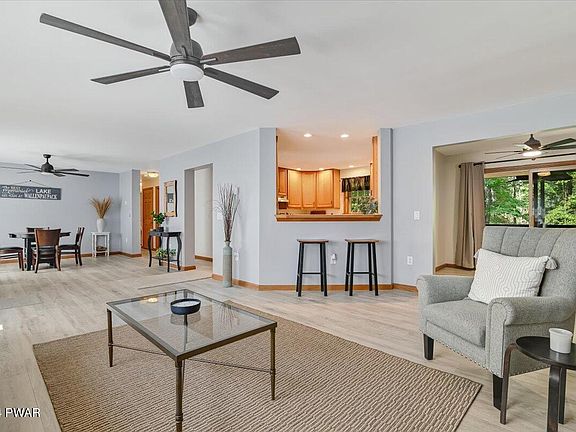 Incredible opportunity to live in a beautifully maintained ranch with two car garage located in Indian Rocks. This home is in great condition and ready for immediate occupancy, so you can unpack and move in right away! The home features a semi-open floor plan that is brightly updated with new flooring and refreshed kitchen cabinet treatments with backsplash. The stainless steel appliances, peninsular bar and breakfast nook make for ease of food preparation and excellent options for beverage station, dining and entertaining. The owner's new bath suite, walk in closet and main-level laundry with space-saving shelving add to the clean lines and convenience of this home. The living room area has a propane free-standing stove for added comfort, and the lower level is ready to enhance your indoor living or just enjoy the added storage space. The overextended sundeck with a covered area adds to entertaining guests effortlessly as you dine or relax. A paved driveway, mature landscaping, and field stone walls in the backyard are the best blending of low maintenance meets wooded bliss. This home is located within walking distance to the pool and play fields amenities and a short golf cart ride to association amenities on Lake Wallenpaupack! Why are you waiting? Your new home awaits!