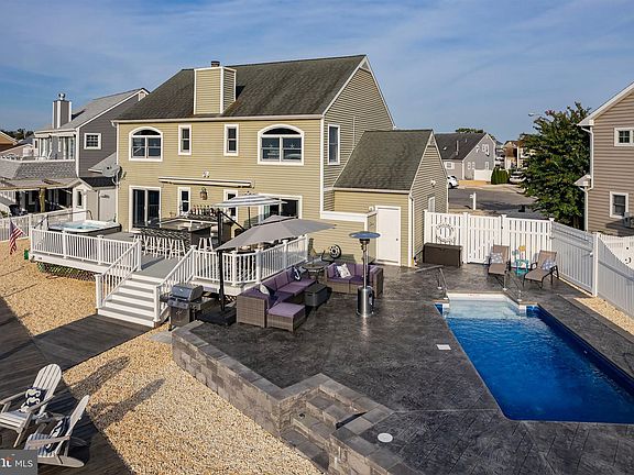 ******HIGHEST & BEST DUE BY 8PM WED 10/4/23******** *Calling all Phila, AC and NY'rs! Berkely Shores is one of NJ Shores Best Kept Secrets. Bring your boat & ALL your water toys! Optional Fully Furnished Home. Amazing Expanded Water Views. Location. Min. to the Open Bay. Set on a deep lagoon & on a cul de sac *120 ft of NEW Extended, Vinyl Bulkhead & Dock! Stunning 4-bedroom, sun-drenched custom home. Breath-taking Water Views. Nighttime is Magical* Watch kids paddleboard & jet-ski in your 'water playground'. Rare opportunity to own this Turn-Key Home. 150K in recent renovations w/NEW: Heated, Inground Pool w/step spa jets, underwater pool light, NEW Vinyl Bulkhead, 2 level Dock, NEW Stamped Concrete Patio & Pool Surround, NEW Matching Shed w/electricity & Solar Landscaping Lighting. Outdoor shower. Vinyl bumpers on bulkhead for boat protection. Huge Deck, Sunsetter Retractable Awning, vinyl railings, with built-in 6pp hot tub & granite topped, outdoor wet bar; perfect for entertaining. Outdoor shower. Newer, beautiful kitchen, under cabinet lighting, granite countertop, breakfast bar & addti'l pantry, NEW wine fridge. Large Master bedroom ensuite. First floor bedroom is currently used as a den/office. Living room w/volume ceiling, gas fireplace. Most of home freshly painted. New & Updated Baths. Ring doorbell, Central Station Alarm system; 2 security cameras. 2-zone Central Air (upstairs unit new 2023), 2-zone Gas Hot Water Baseboard Heat. Public water. Public sewer. Home built on high ground (X-zone, Flood Insurance Optional)