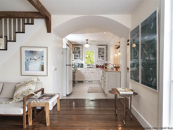 Calling all artists, writers, musicians and dreamers!! Storied artistic sanctuary less than 2 miles to the center of Woodstock and beautiful Cooper Lake-- here are three structures including a 3 bedroom, 2 bath updated 1850's farmhouse with a new gourmet kitchen including Viking range and Big Chill refrigerator. There are newly updated bathrooms; in the master bath a claw foot bathtub sits under a skylight. The living rooms' wood burning fireplace faces towards a vast meadow framed by Bearsville mountain views. Dramatic impact is added to the generous family room with its 16' wall of windows. A cozy and historic writers cabin sits above a babbling creek. The wonderful 1000 sq. Ft "party barn" with its north light window wall, skylights & 20' ceilings offers myriad uses. Bordering the meadow nearest the house is a sweetly flowing creek. This natural wonder nourishes the bird & wildlife and provides constant pleasure for all. In good weather creekside is a peaceful location for enjoying the sound of the bubbling brook and views. Truly, here is a quintessential Woodstock home. The updates have kept the integrity of the original charm & local history. This well loved home is being offered to new owners who will continue to enjoy the beauty & energy which permeate every aspect this special property.