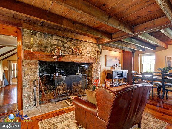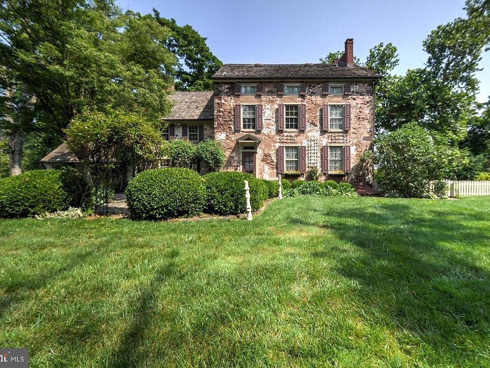 One of a kind historic home now available. Beautiful 4 bedroom, 3 1/2 bath home is rich in history. Built in 1753 and is on the National Register of Historic Homes overlooking the Jericho Mountains. Formerly the Eagle Tavern, hosted pioneers and travelers on the old rural highway, hotel with ballroom, voting headquarters, post office and local store. This 3 story, solid stone home with thick walls is full of charm and character. This home has newly refinished, random width pumpkin pine flooring throughout. Freshly refinished deep, thick window sills and window seats. High ceilings on the first floor and most upper floors with many cathedral ceilings. Kitchen has commercial gas cooking stove with Jennair downdraft fan, 7' island and granite counter tops. Dining room has a sitting area and 7' solid field stone walk-in fireplace with beautiful 12" thick solid wood lintel. Spacious master bedroom with windows overlooking the open field and Jericho Mountains. Master bath has bidet, claw foot tub and stall shower. An abundance of exposed beams throughout. The home has been updated including HVAC, freshly painted, 400 amp electrical system, whole house generator and new upgraded and expansive wireless internet. The guest suite has full bath complete with original stone converted fireplace and steam shower. Butler stairways to second floor and basement with wine cellar and walk-out. An abundance of built-in closets and original lock sets and hinges. Newer 3-car Amish built garage with custom doors and finished second floor with hardwood floors and post and beam construction and HVAC. There is also an office built into the second floor of the carriage house. Recent updates include newer fencing, 2 blue stone patios with landscaping, furnace, basement windows and frames, powder room, exposed stone wall, refinished hardwood floors and window sills, and new gazebo. Private tennis court and in-ground swimming pool is yours to enjoy! This home also make an amazing Bed & Breakfast or an excellent Air BNB opportunity! Award winning Council Rock School District. Minutes from great shopping, restaurants and parks!