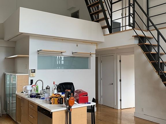 Rare bi-level 3 bedroom loft style penthouse with 18' ceilings and insane Manhattan views! 2 bedrooms on the main level: One with private balcony. Upper floor bedroom has en-suite bath. Direct access to private area of the roof. Make your own garden oasis. Apartment features central air/ heat, dishwasher, washer/dryer hookups. Close to the Graham Ave L train and great shopping, parks, and restaurants and all that Williamsburg has to offer. Better pics coming when work is complete. Contact me for videos or an in-person showing asap.