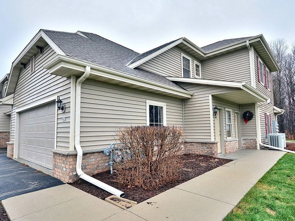 Gorgeous open concept end unit with vaulted ceilings and sunny exposure. 3 Bedrooms and 2 full baths. Private covered balcony overlooks 13 acres of wooded parkland. Spacious kitchen with birch cabinets, stainless appliances, new sink, and breakfast bar. Living room with fireplace, separate utility room with full sized washer & dryer. 3rd bedroom can be utilized as a den or home office. Master with walk-in closet and private full bath. Private attached 2+ car garage with opener. Beautiful and private views unlike other condos. Beautifully maintained, clean, and tastefully decorated. You'll love calling this your new home.