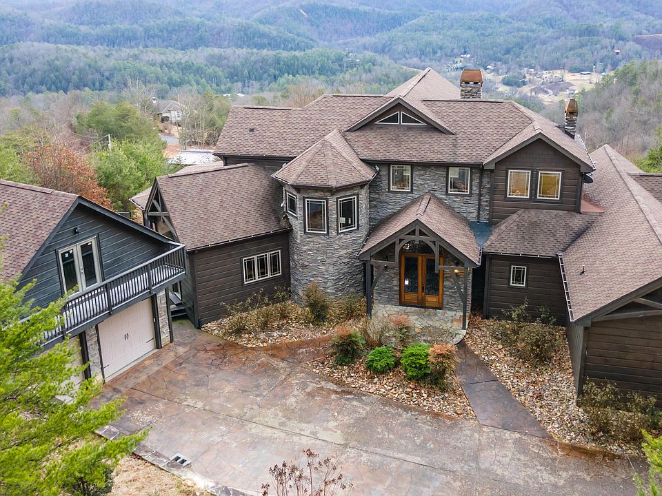 Kathryn's Kastle is a beautiful fully furnished 5 bedroom 4.5 bath house in the Smoky Mountains with breathtaking views. Kids and parents alike will love playing foosball, air hockey and numerous vintage video games in the recently added and incredibly awesome game room. The 5th bedroom on the lower level has 4 queen bunks. The house has numerous eating areas, including a screened-in porch with fireplace. There are two bedrooms on the main level. The master suite has a large walk-in closet and bathroom that features a full stone shower with multiple water streams. There are 2 more bedrooms on the upper level with private baths. Enjoy playing pool or watching a movie in the theater room, while grilling out on the patio at the outdoor kitchen. You can also soak in the hot tub while taking in the mountain views. There is a large separate unfinished 2-car garage with a studio apartment upstairs. You could finish it out and use it for extra rental income or as your personal home. The interior was just fully painted, and a closet has been added to one of the main floor bedrooms. The home is being sold completely furnished to accommodate overnight rental income or to allow for immediate move-in. Motivated Seller! Buyer to verify square footage