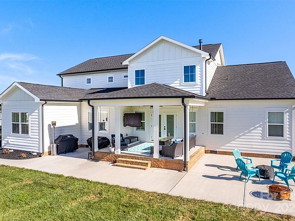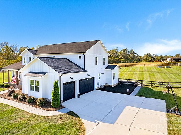 This like new, custom designed home sits on a HARD TO FIND 5.55 acres, just minutes from Mooresville! As you come up the long driveway, you'll see the well maintained front yard and oversized covered front porch with cedar columns, lots of seating and ceiling fans...just asking you to come relax. Come into your 2-story foyer & open floor plan. Living room includes beautiful built-ins to hold your books & a floor to ceiling stone fireplace. Kitchen includes an oversized quartz island & barn door pantry. A huge custom primary suite with a large shower & tub. On the opposite side, you'll find a guest room, full custom bath & office (or flex space)! Up the hardwood stairs you'll find a bonus area, 2 bedrooms & 2 bathrooms (one ensuite!) The back patio overlooks acres of open area-perfect for watching sunsets, raising animals, gardening or recreation. This property is the best of country living with city conveniences nearby! So much to list, this rare gem is a must see! Agent is owner.