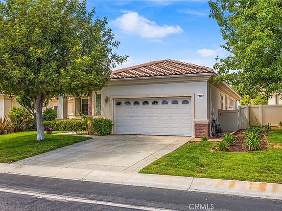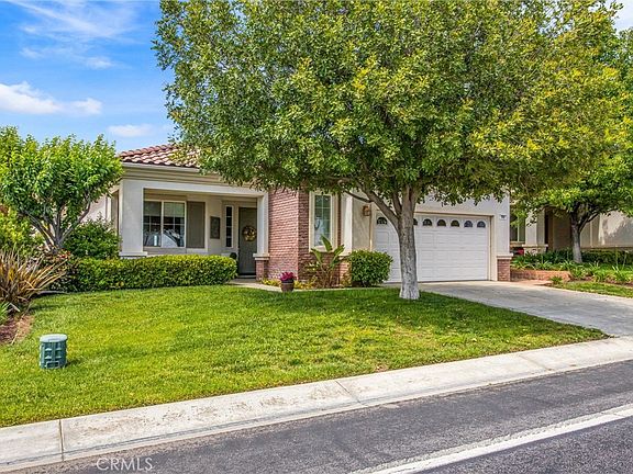 Bring your fussiest buyers! This house is turnkey and ready for you to move right in. Solera is Beaumont's premier 55+ senior community with a gated entry and guard shack. This most popular "Trillion" model is 2 bedrooms, 2 baths plus an office/den with just under 1700 sq. feet of living space. This single story home has a great open floor plan. The kitchen has stainless steel appliances, corian countertops and a walk in pantry. The Living room has a gas fireplace, ceiling fan and a large sliding glass door looking out to the backyard. The dining area is open to the living room. All of the common living areas have beautiful laminate wood flooring. The primary bedroom is very spacious with a huge walk-in closet and a bathroom with double sinks, garden tub and separate shower. The second bedroom has a large walk-in closet, ceiling fan and connects to the hall bathroom. The office/den has a double door entry. The home has indoor laundry and an oversized 2 car garage with possible room for a golf cart. The house has 10' ceilings which gives it a grandiose appearance as you enter. The backyard is beautifully landscaped with automatic sprinklers and bubblers making it extremely low maintenance. The yard has a lemon tree and a cherry tree. The monthly HOA includes your cable and internet. The house is conveniently located in close proximity to the clubhouse, pool, spa, tennis courts etc. The mail room is almost directly across the street so no need to drive to retrieve your mail. Also, during the summer they have concerts on the green once a month. This is a must see!