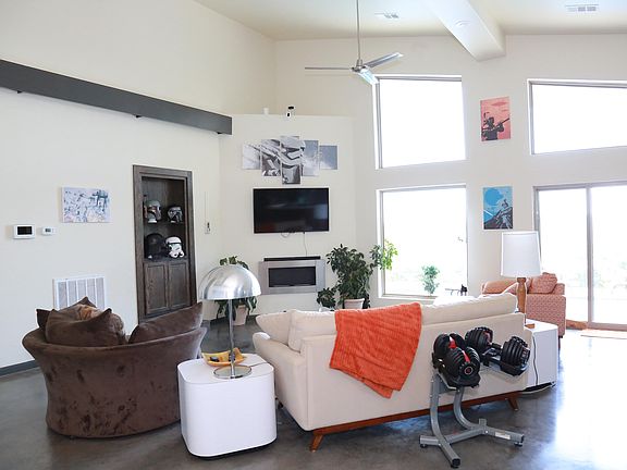 Almost NEW Contemporary modern home with panoramic view. This home has so many upgraded extras. The living area has 20 ft ceilings open to the kitchen complete with the extras like soft close cabinets, Corian countertops and upgraded appliances. From the metal roof to the 14 & 16 seer HVAC units, this home was built for low maintenance and efficiency in mind. The 3 bed 2 bath home has a master with a view, this home will surprise you. Built less than 3 years ago, the property has a 30 x 40 heated shop, that includes a 400 sq. ft fully furnished, one bedroom apt w/ mini split perfect for a college student or mother. Don't miss the huge covered back porch over looking the refreshing salt water pool & the view of 3 counties. SOO many extras, not a cookie cutter home.One you need to see