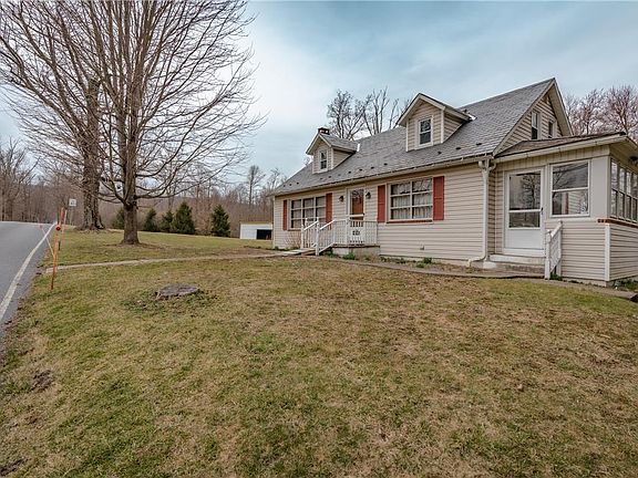 Great country home sitting on a 2.68 acre corner lot with partially wooded land, beautiful stream and 3 story oversized detached garage!  This home offers a nice sized eat in kitchen, large family room and dining room areas, main floor full bathroom and bedroom den or office area.  Second floor offers 2 additional bedrooms, hardwood flooring, additional storage space and half bathroom.  Full basement with laundry area, storage and 1 car garage space.  Enjoy the scenic views year round with your enclosed front porch just off the kitchen!  Outdoors are amazing with a large corner lot, 3 story detached garage, utility shed, partially wooded land and beautiful stream! Call today for your private showing!