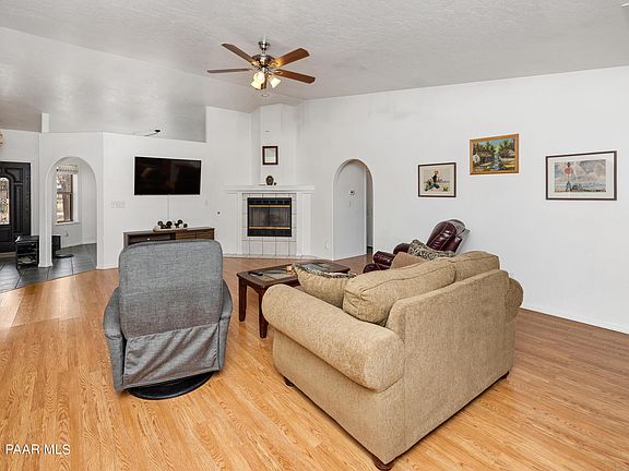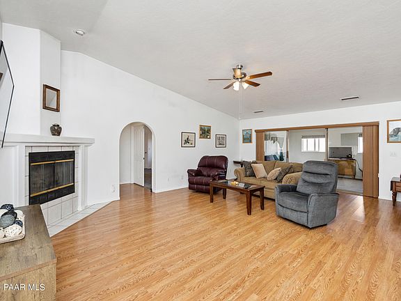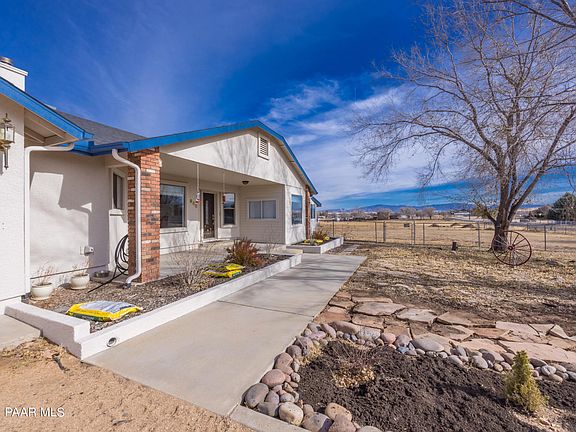 Situated in a beautiful setting with outstanding long distance mountain views, this beautiful over 2 acre property has outstanding curb appeal and is flat, level, usable land! This single level home is also conveniently located to nearby shopping/dining in Chino Valley! The interior features an open, spacious great room concept split bedroom floorplan, gas fireplace, ceiling fans, and raised panel interior doors. The kitchen features beautiful stainless steel appliances, including a four burner gas range, gleaming granite countertops, a dual vessel sink, and breakfast nook. The living room is very spacious in size with wood laminate flooring, a vaulted ceiling, and gas fireplace with tile accents. Off the formal dining room is an additional room which would be the perfect home office/hobby space! The oversized master suite contains a walk in closet and spacious bathroom with dual vanity and walk in shower with glass enclosure. The guest bedrooms are generous in size and equipped with ceiling fans. The full guest bathroom contains a tub/shower combo and raised height vanity. The laundry room has great storage with upper cabinets and built in storage. The fully enclosed sun room is spacious and provides a great flex/media space. The backyard features an enclosed patio, new wooden fence along the back and garden beds. The property is 2.18 acres and flat, level, usable land providing countless opportunities!