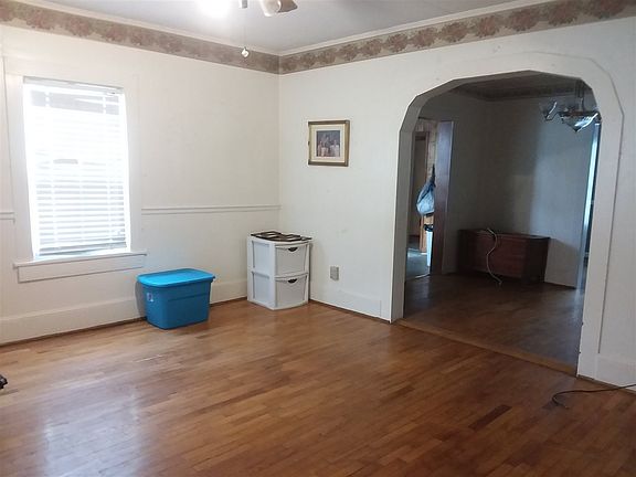 2 bed 2 bath, large owner's suite with a walk-in closet, separate room for an office, nursery or reading/sitting room and a large bathroom with double sinks. Separate dining room, bonus room, family room/3rd bedroom. Wood floors throughout. L-A-R-G-E yard, completely fenced, plenty of room for Fido, the kiddos and a garden, includes a storage building. 2 covered porches to rock or swing on. Cellar under home. Great first home or investment property.