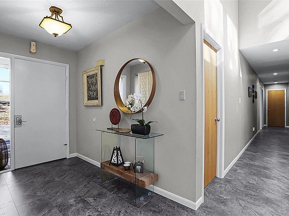Beautifully renovated, contemporary 5bd/3.5b offers sweeping views of the valley filled with mature trees, a wet weather creek & the occasional native wildlife, all visible from the fabulous multi-level deck. The main level lends itself to single-level living with an additional master en-suite with separate entrance. Your mother-in-law would love it! There are clear sight lines from the living & dining room into the updated kitchen featuring quartz countertops, maple, shaker cabinets, soft close drawers, & designer, deep well sink. Newly remodeled 2nd level with beautiful, pro-grade, laminate flooring is home to a spacious, vaulted master with amazing en-suite featuring double vanity, anti-fog, backlit, mirrors & walk-in, deluxe shower. All bedrooms have walk-in closets with organizer systems. The room directly across from the master is currently used as an art studio. This property is in conjunction with a relocation package. To view it, please do so through a real estate agent.