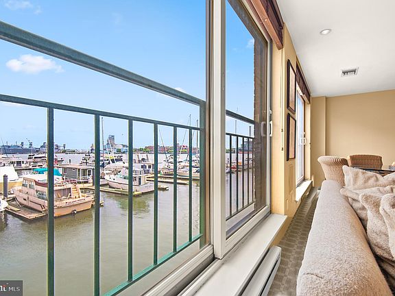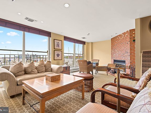Amazing nearby Inner Harbor Views & Sunsets on the Patapsco River in this spacious contemporary 3 level condo with balcony on its own shared private pier! Dedicated 2 car parking directly below the condo with electric vehicle EV Charging Station. Also can be offered fully furnished. Enter into the spacious living room with a wood burning fireplace and enjoy lots of light and spectacular views of the harbor & marina with big ships, tall ships, water taxis and sailboats passing by. Fully remodeled Chefs' kitchen with Stainless Steel appliances (GE Monogram and Krupp) including an induction stovetop. Also lots of counter space in beautiful granite and an amazing amount of cabinet space! Plus a wine cooler! Office/ dining area next to the kitchen with built-in cabinetry. Next level up you find the master bedroom with a second wood burning fireplace, sitting area, built-in cabinetry, large walk in closet plus dressing area. Beautifully remodeled bathroom; spa walk-in shower with frameless glass wall & door plus double sinks with lots of beautiful custom cabinetry & lighting. Top floor large bedroom with balcony overlooking the harbor, walk-in closet and private en-suite bathroom. Beautiful paint colors & wall treatments throughout and nice high end carpet too. All Andersen windows. Lots of recessed and under cabinet lighting with dimmers in every room & space. Brand new HVAC system. All rooms are wired for Internet, phone, audio and cable. Two parking spots convey; deeded separately. Storage locker next to parking. Additional parking available for guests in the adjacent main condo building garage. Beautiful outdoor pool with Harbor Views; membership is optional and $600 extra a year/ season. Nice exercise room in next door building which is included in your Condo & HOA fees. Walk out directly onto Baltimore’s famous promenade or one block away into downtown historic Fells Point for a nice morning or evening stroll. Enjoy a coffee and breakfast at the Pitango Corner Bakery and Café or enjoy the V-NO Wine Bar and Penny Black Bar and Restaurant, etc. Short walking distance to all Fells Point’s historic restaurants, bars and pubs. The promenade stretches from Canton to the Inner Harbor and beyond with many nice restaurants & outdoor terraces along the way. Watch New Year’s and Fourth of July fireworks launched from a barge directly opposite from the end of the private pier. Enjoy Baltimore’s annual Festival of Lights which start at the end of the pier. Within a short stroll to lots of wonderful restaurants, a large grocery (Safeway) plus smaller grocery stores, convenience & hardware stores, etc. Park your car the entire weekend and walk everywhere instead! Living here feels like you're on vacation all year round! : )