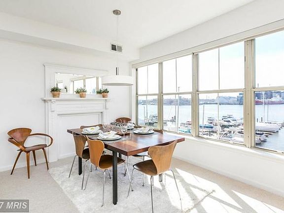 Exceptional direct waterfront unit boasting 1,631 sq. ft. w/ covered balcony & 2 car garage pkg.This renovated home features: dramatic LR/DR floor plan w/wall of windows & spectacular views of Harbor & Fells Point, sleek kitchen w/ SS appliances,en-suite master BR/BA,second BR & BA & powder room,updated systems,add'l storage.Bldg. amenities: 24 hr. security,pool,exercise room. Great location!