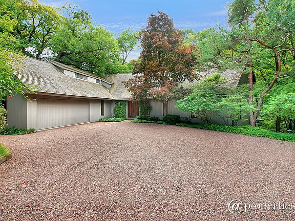 Enter this secluded setting down a private stone driveway. Custom built by present owner this home features huge window walls with amazing views of the ravines. There is wonderful wrap around deck with entrances from all major rooms. Fabulous flexible and open floor plan with very high ceilings and natural materials. Enjoy the lake breezes in the screened porch. First floor master suite with office & door to deck. Two family bedrooms w/ensuite baths on the 2nd floor. Large scale rec room in lower level. First floor laundry.