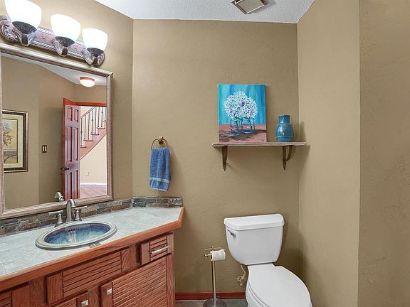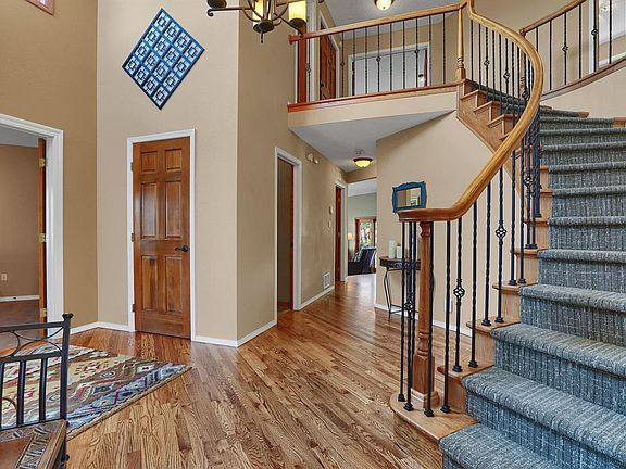 Stunning custom home and setting on private 2.5 acre lot, mature trees with sweeping views of red rock formations, bluffs & Elephant Rock. This former parade home award winner boasts 2x6 exterior walls & loads of recent upgrades plus easy outdoor living! Coated steel roof(2006), energy efficient Anderson windows(2008), master bath(2012), kitchen(2005), carpet(2015), furnace(2008), water heater(2012), detached stucco garage/workshop (2015), stained concrete patio(2017), wood/wrought iron railing(2016), French doors(2016). Main level bedroom doubles as an office or guest suite with adjoining bath. Chef's dream kitchen with wood floors, Corian countertops, huge quartz island with gas cooktop, double convection ovens, breakfast nook open to main level family room with easy access to deck for outdoor meals and entertaining. Formal dining room is perfect for dinner parties w/ big views & french doors separating it from the living room.