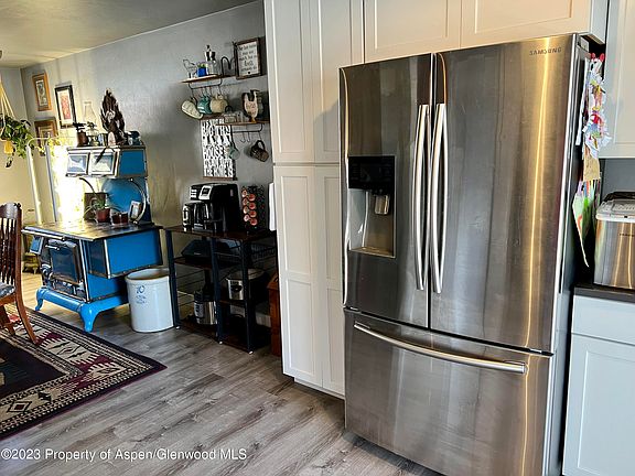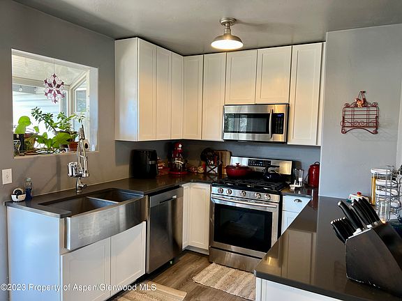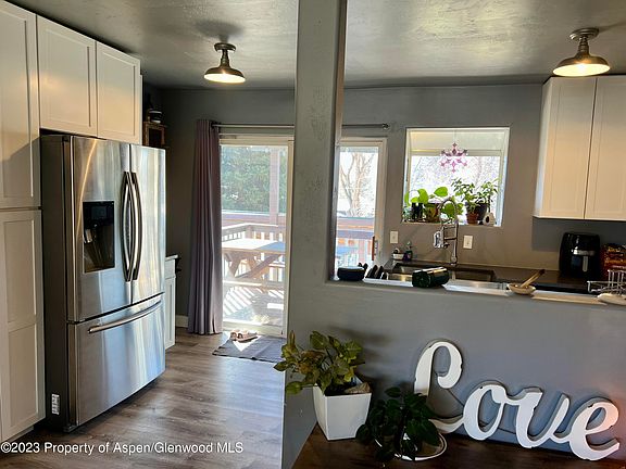 Tastefully updated in 2020 and move in ready for you! This home is centrally located in Meeker, yet provides privacy, surrounded by mature trees and a well-kept yard, you will enjoy your outdoor living space as much as the interior. The home is split between two levels, with the sleek kitchen, dining, living room, full bathroom and one bedroom on the upper level. A lovely south facing deck is accessed from the kitchen. Downstairs includes a spacious primary bedroom with abundant closet space, as well as two additional bedrooms and laundry/mudroom. An attached single car garage is great for storage and recreational vehicles. The deep driveway gives you plenty of off-street parking. A workshop, storage building and additional parking is accessed off the alley.