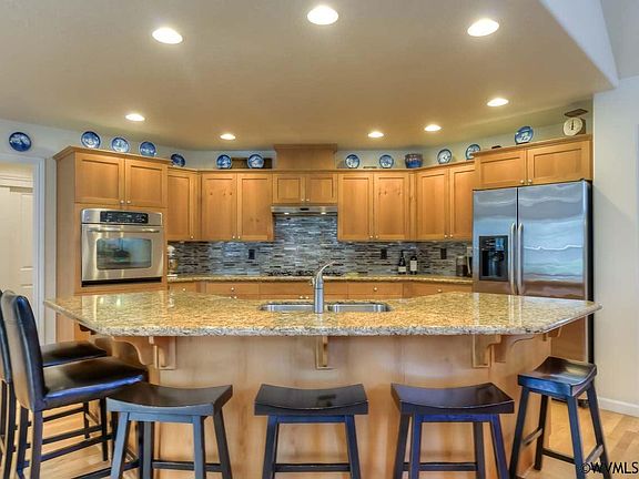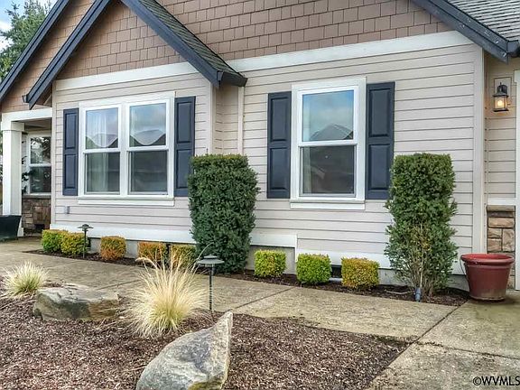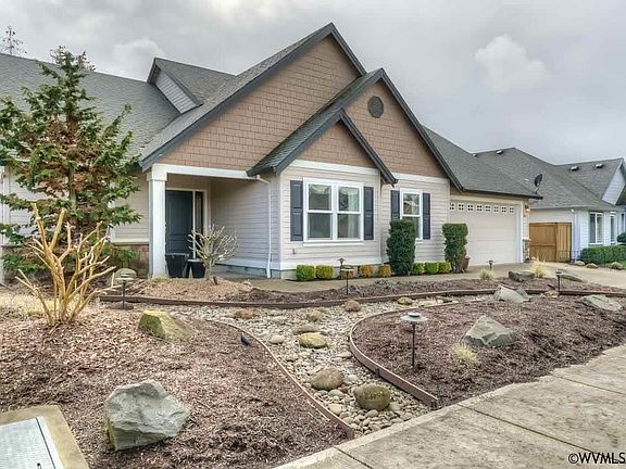 Accepted Offer with Contingencies. Impressive single level home in desirable Maryhill subdivision located on edge of Mt Angel. Backs up to Ebner Park. Open great room plan with hardwood floors, vaulte living room and master, gas fireplace, 3/2 with den, 2024 sf. Stylish granite / tile kitchen with ss + gas. Other features: 2 car garage with shop area, fenced with gate to Ebner Park, back patio featuring pizza oven and BBQ. Fun addition! Great 55+ community alternative with no HOA fees or bring the kids to play in the park!