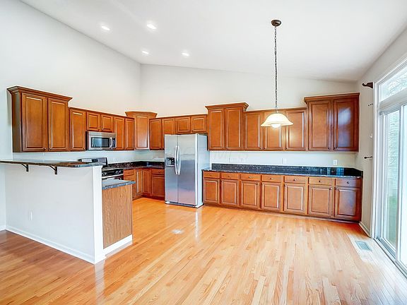 All offers due 5pm 12/8. Step inside this thoughtfully designed 1-story home, featuring vaulted ceilings, hardwood floors and an open, airy floor plan. The spacious kitchen seamlessly flows into the dining area and great room with a cozy gas fireplace, making it perfect for entertaining. The primary suite offers a large bedroom and an en-suite bathroom with a jetted tub, walk-in shower, water closet, and double vanity. On the opposite side of the home, 2 guest rooms offer comfort and privacy for family or visitors. The full basement is a blank canvas, ready for you to finish to your liking, with a rough-in for a bathroom. Outside, the fenced backyard is ideal for outdoor dining, gardening, or relaxing. Easy access to schools, parks, shopping, dining, and major highways. See A2A remarks