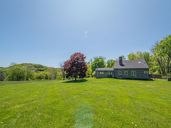 A unique opportunity to own a piece of time. This lovely farmhouse, barn, shed, and garage, sit on 5 pastoral acres overlooking the Jacksonville River Valley, with extensive vintage stone walls, mountain views, and beautiful lawn space. The property and adjacent vintage grist mill have a rich history dating back to the civil war. Inside the home you are treated to a large open floor plan with spacious living room and wood burning fireplace, updated kitchen with granite counters, large dining area, breakfast bar, large main floor entry area, main floor laundry and full bath, and covered porch ideal for wood storage or 3 season enjoyment. Upstairs are 3 large bedrooms and a second full bath, as well as a huge walk in closet for great storage. There is also a full basement for additional storage or finish potential. Outside is a large barn with equipment carport, garden shed, 2 car detached garage, fenced in pet run, and plenty of space to make this property your own. This property sits towards the end of a seasonal road, affording tremendous serenity for your time in Vermont. New roof in 2018.