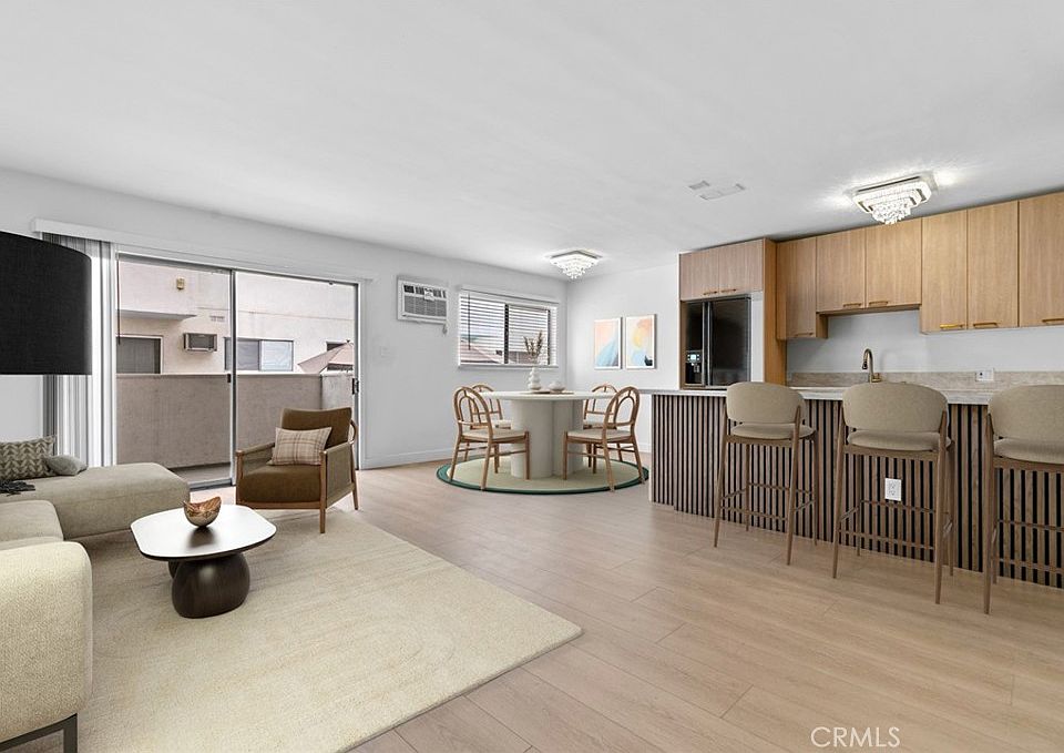 Welcome to this bright and beautifully remodeled 1-bedroom, 1-bath condo in the vibrant heart of West Hollywood. This stylish single-level home features an open floor plan that seamlessly combines comfort and contemporary design. The brand-new kitchen boasts sleek finishes, complemented by a fully updated bathroom and new laminate flooring throughout. The spacious living and dining areas flow to a private balcony overlooking the sparkling community pool—perfect for relaxing or enjoying your morning coffee. Ideally situated just minutes from premier dining, shopping, nightlife, and entertainment, this move-in-ready gem is perfect for first-time buyers or savvy investors alike. Please note: Interior photos are virtually staged.