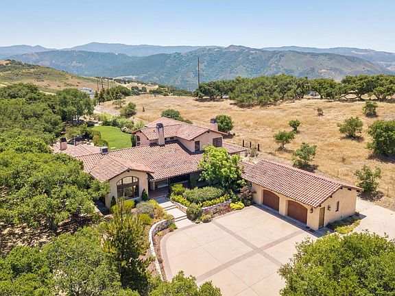Set on over 10 scenic acres, this is your everyday resort home. This home offers great indoor living spaces as well as wonderful outdoor living areas from a covered logia, to patios and porches off of each room, even a free form swimming pool. The home's spaces are perfectly scaled with six bedrooms and five and one-half baths. The craftsmanship is seen and felt throughout the custom home. The upstairs owners' suite includes a large private soaking tub that provides expansive panoramas of the pool and outdoor areas as well as views of the mountain range. There is a 2 car garage with a separate 4 car garage located near the all-metal Barnmaster Ranch Series barn. The permitted barn currently has 3 stalls set up and one paddock that leads to a large turn out. The weather is perfect at this private retreat, with views from the east for sunrise over Mt. Toro and views to the west for sunset towards the Santa Lucia mountains and the Pacific ocean.