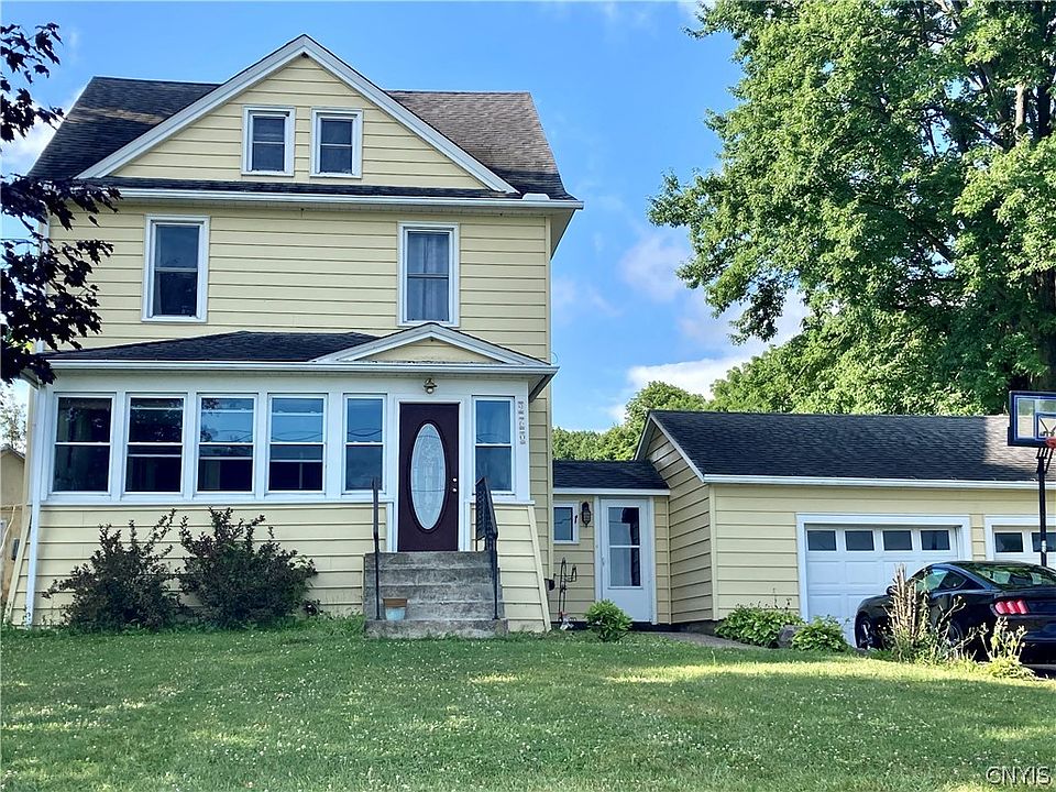 The Perfect blend of Country living and Charm. Situated on 1 acre, this lovely home boast 5 bedrooms and 2 full baths. Not to mention an enclosed porch, 1st floor laundry and plenty of SPACE with an attached 2 car garage, out building, full basement, Finished attic and mudroom. Featuring natural wood work, Hardwood floors and Eat in kitchen. This home has vinyl siding, a furnace less than 10 years old, and a pellet stove.