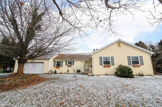 Immaculate Nazareth Ranch Home with attached 2 car garage! Don't miss out on this meticulously maintained & updated home located on 1.03 acres! Inside you will find an open foyer with gleaming hardwood floors which lead you through the open concept floor plan! Large family room features an included 47' wall mounted TV, pellet stove, warm color tones & scenic views of the rear yard! Spotless kitchen boasts Corian countertops, oak cabinets, newer appliances & breakfast nook with eat at peninsula! First floor laundry! Enjoy 3 nice sized bedrooms with ample closet space! Two remodeled full bathrooms! One features a Premier Care Bathtub! Don't forget the full finished basement with crafting or office space & another family room! Need extra space for an in law or college student? You will find it here! Upgrades also included are Central Vac, Water Softener, Radon System, Refrigerator, Washer, Dryer, 19 Horsepower Rider Mower & pull behind cart, bagger, sweeper & various lawn tools & shovels!