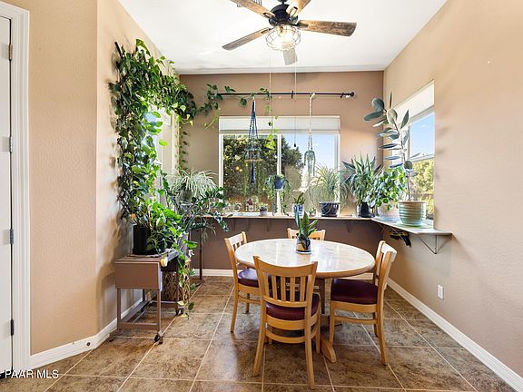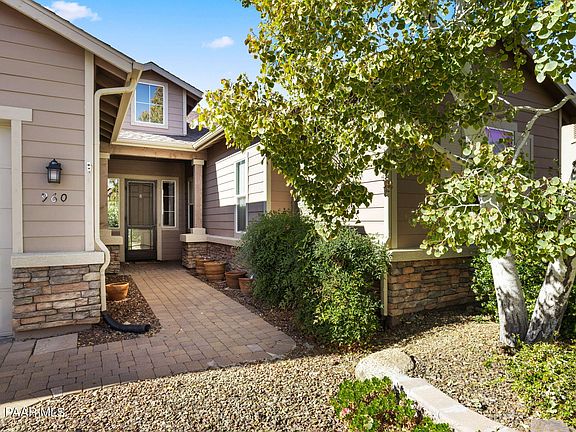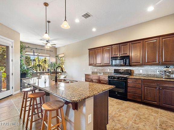 LOWEST PRICE PSF IN QUAILWOOD! Move-in ready, bargain priced Craftsman style home in Quailwood's desirable Regency area with the perfect floor plan on a huge view lot at the end of a cul-de-sac. Level paver driveway leads to a formal entry opening to the great room and views to the fenced private rear yard. Kitchen features rich cherry cabinets, granite island and countertops, black appliances, huge pantry. Formal dining area opens to a covered paver patio with views of the Bradshaw Mountains. Primary suite features patio access, spacious walk-in closet, dual vanities, tub and walk-in shower. Split plan with two additional bedrooms sharing a large full bath. 16 inch tile in wet areas/walkways. 8 foot doors throughout. Extra half bay in garage for workshop. New carpet to be installed at
